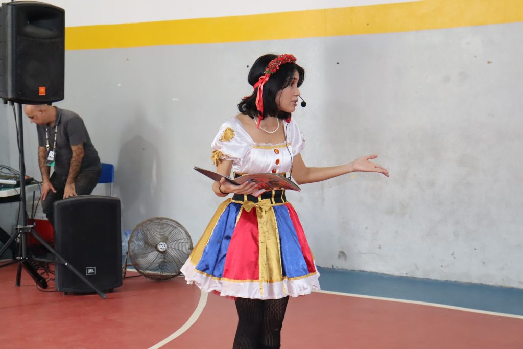 Para Cláudia Sivini, coordenadora da Escola Municipal Professora Zilka de Oliveira Graça, a Pré-jornada é uma oportunidade de encantamento tanto para alunos quanto para educadores: “O Sesc nos dá um suporte maravilhoso, porque eles trazem esse encantamento que é a leitura, esse mundo literário, que faz as crianças também se encantarem, porque é como se você estivesse tirando as ilustrações do livro e trazendo para que as crianças visualizassem, sentissem, pegassem e vivenciassem esse momento com eles. Então, eles ficam super encantados e os adultos também se encantam junto com eles. Eles ficam na expectativa de ler mais, de entenderem mais, porque a gente está sempre na busca da fluência da leitura, para que eles tenham entendimento do que estão lendo. Então, eles ficarem ansiosos por esse momento é muito bom.”