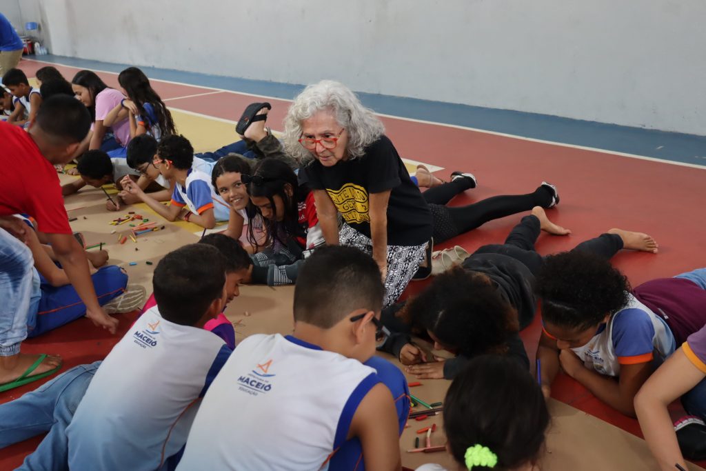 “Minha parceria com o Sesc é muito feliz. Há anos participo da Jornada fazendo oficinas de ilustração e todo ano é uma jornada nova. Por mais que a gente tenha algumas coisas que se repetem, é sempre uma novidade. E o que mais encanta é a interação das crianças e jovens. A gente propõe um desenho coletivo, elas topam, mergulham, se jogam. É enriquecedor para a gente que está do lado de cá.”, conta Beth Krisam, que conduz as oficinas de ilustração durante a programação.