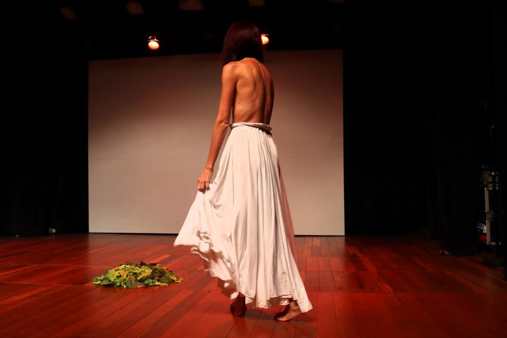 Por meio da intensidade de seus movimentos corporais, a intérprete e criadora do espetáculo aborda episódios de sua vida e os entrelaça à dança. “Durante muito tempo a dança escreveu a dramaturgia da minha vida, foi guiando as minhas escolhas. Em dado momento, a dramaturgia da minha vida passou a escrever a dramaturgia da minha dança”.