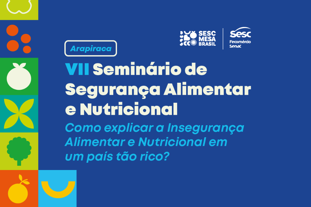 No dia 1º de novembro, o Sesc Mesa Brasil – Arapiraca promoverá o VII Seminário de Segurança Alimentar e Nutricional, abordando o tema "Como explicar a insegurança alimentar e nutricional em um país tão rico?". O seminário será realizado no Teatro Hermeto Pascoal (Sesc Arapiraca), das 8h às 12h, e contará com uma apresentação de chorinho pela Associação dos Aposentados, Pensionistas e Idosos de Arapiraca (AAPIAR), além de uma palestra da nutricionista, sanitarista e doutoranda em agroecologia, Renata Medeiros.