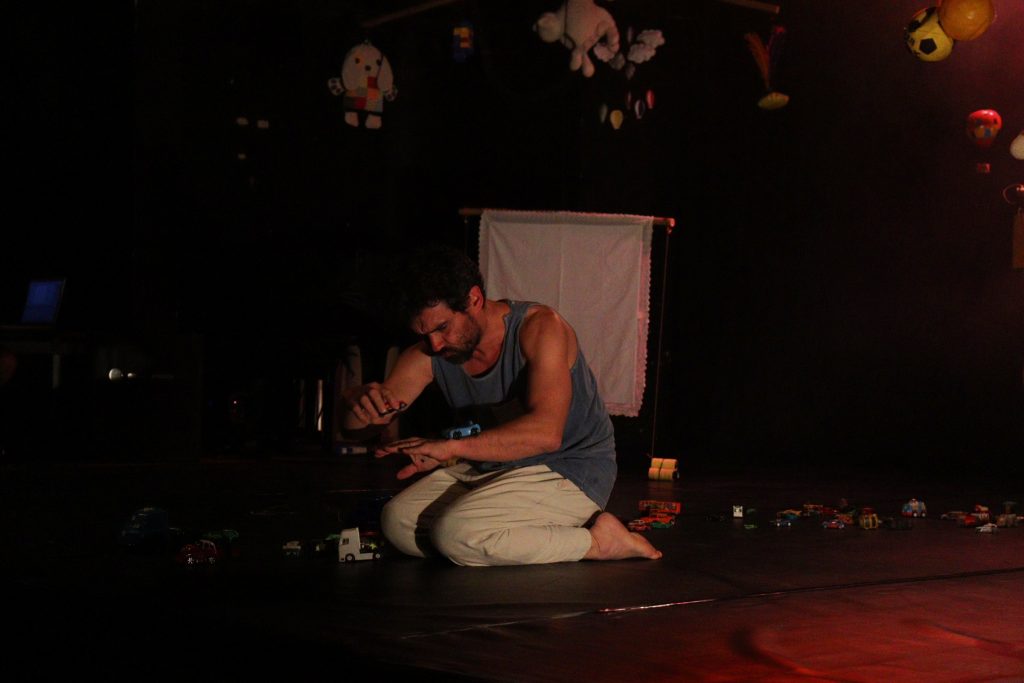 Sob direção de Anamaria Fernandes, a montagem estabelece uma ponte poética entre três gerações: avô, pai e filho, traçando um percurso emocional e simbólico através das experiências de comunicação entre eles. Em cena, Gondim traz fragmentos do cotidiano, como o brincar com o filho, interpretado por meio da dança e da linguagem corporal. A trilha sonora de Tiago Macedo é intercalada por silêncios, dialogando com a ausência do avô, que via no silêncio uma oportunidade de contemplação da vida.